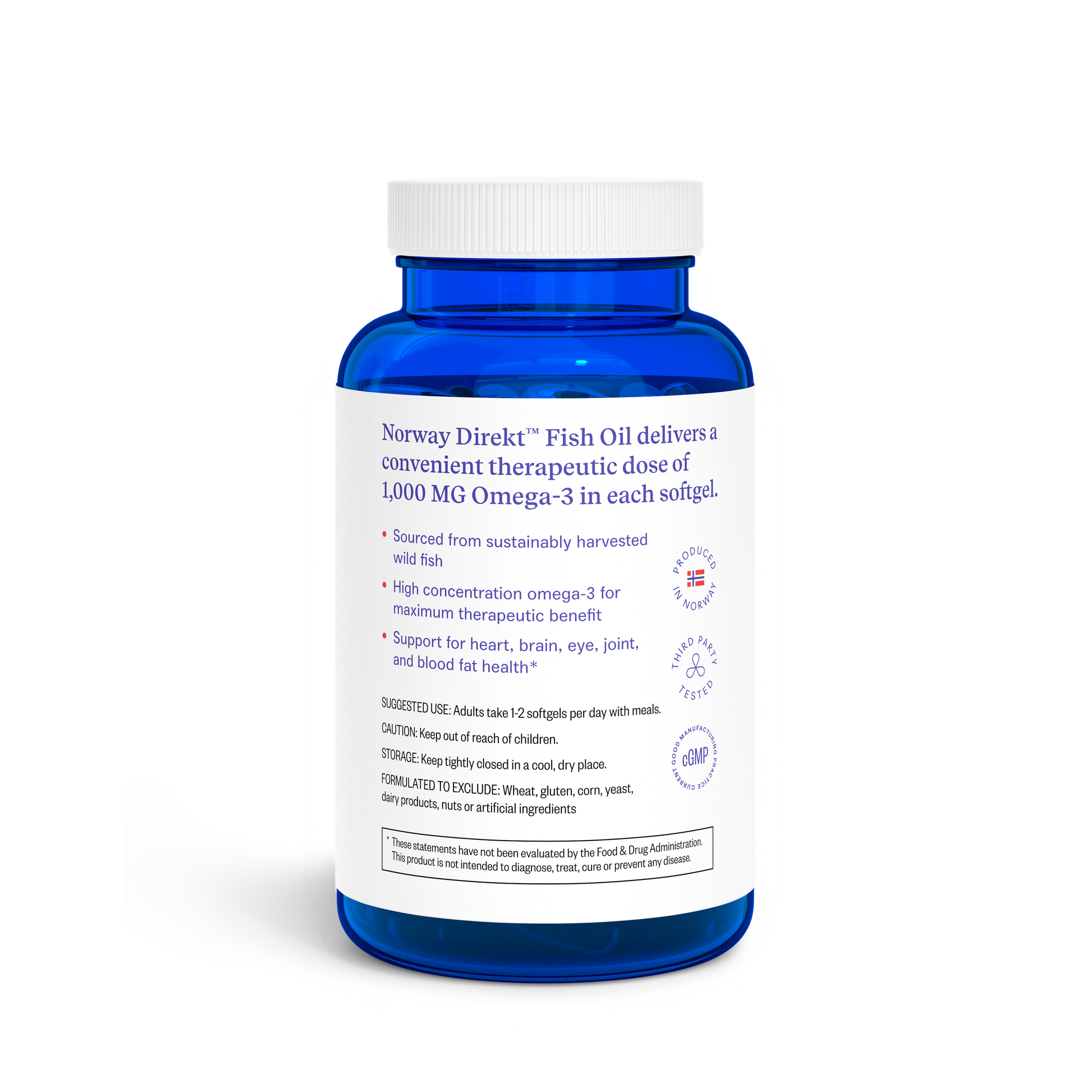 Norway Direkt is custom made in Norway by the world’s leader in pharmaceutical-grade Omega-3 production. The Omega-3 fatty acids are concentrated for easy dosing and maximum therapeutic impact. This formula is ideal for all health applications that benefit from increased intake of Omega-3 fatty acids.