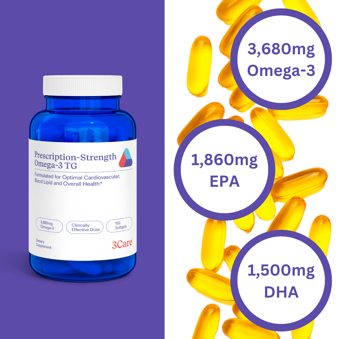 - 3Care® Prescription Strength delivers the dosage and ratio shown in multiple scientific studies to be extremely effective for cardiovascular heallth